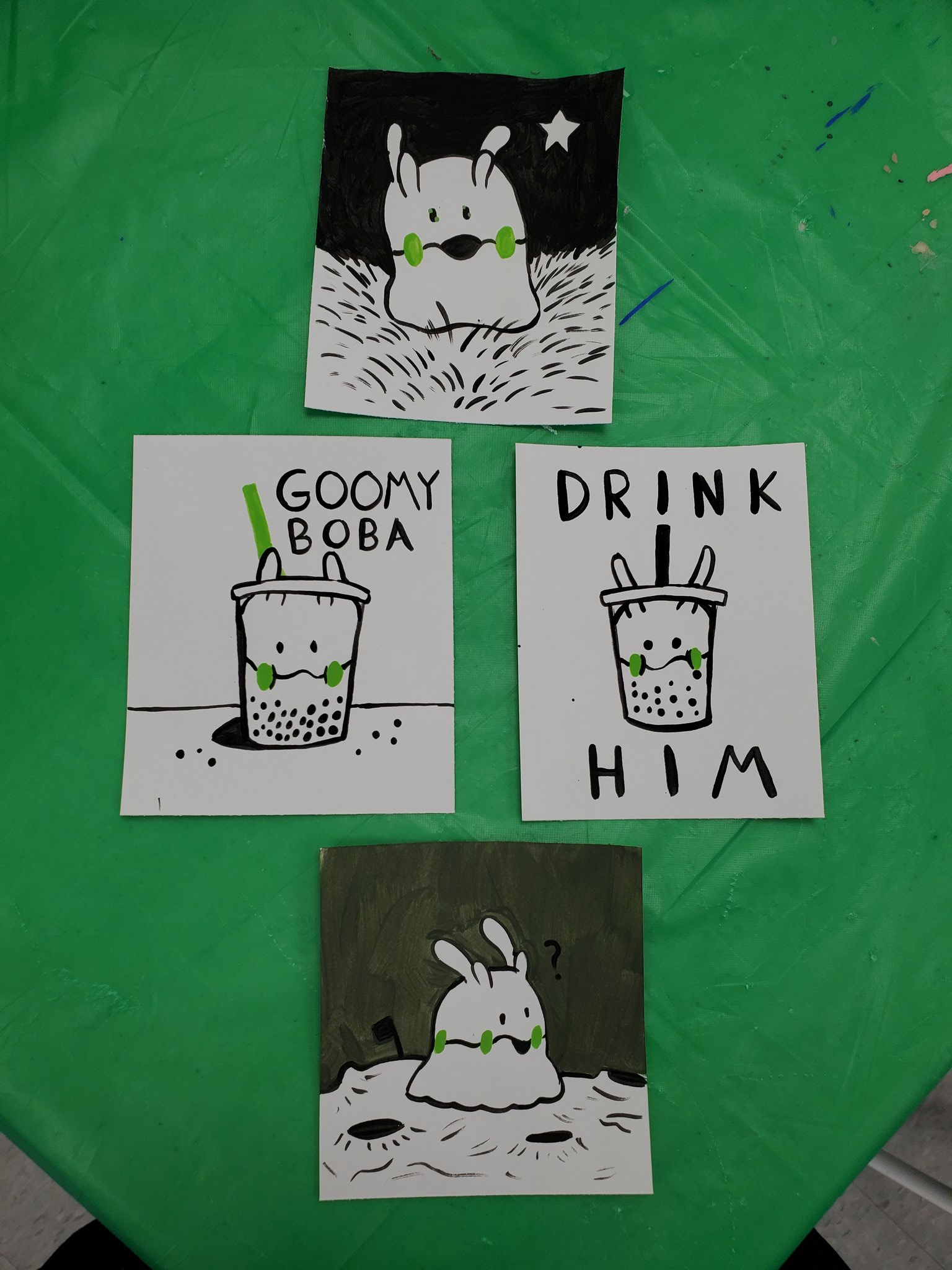 Goomy paintings on small cards! Each card is less than 4 inches long.