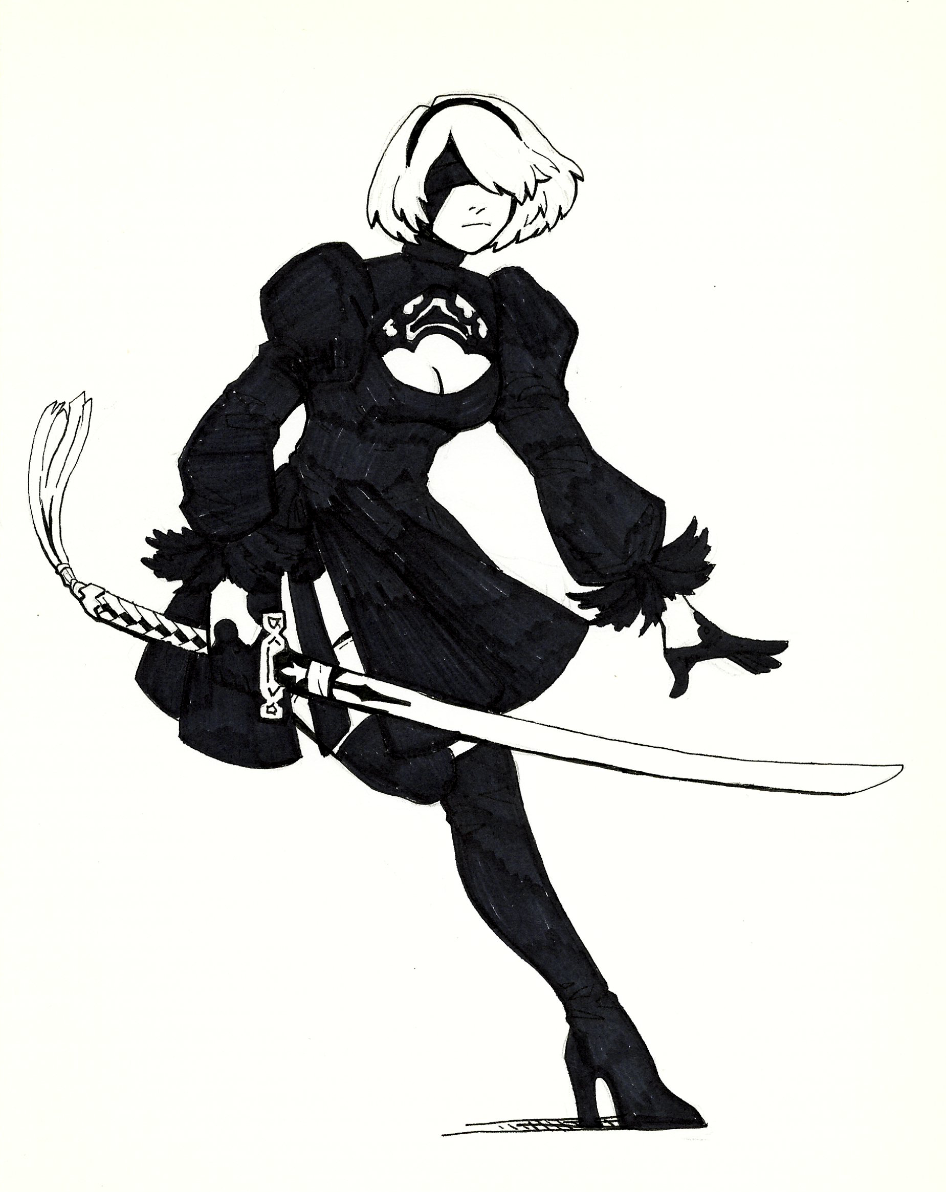Nier Automata illustration on aged paper! This is the ORIGINAL WORK, not a duplication!